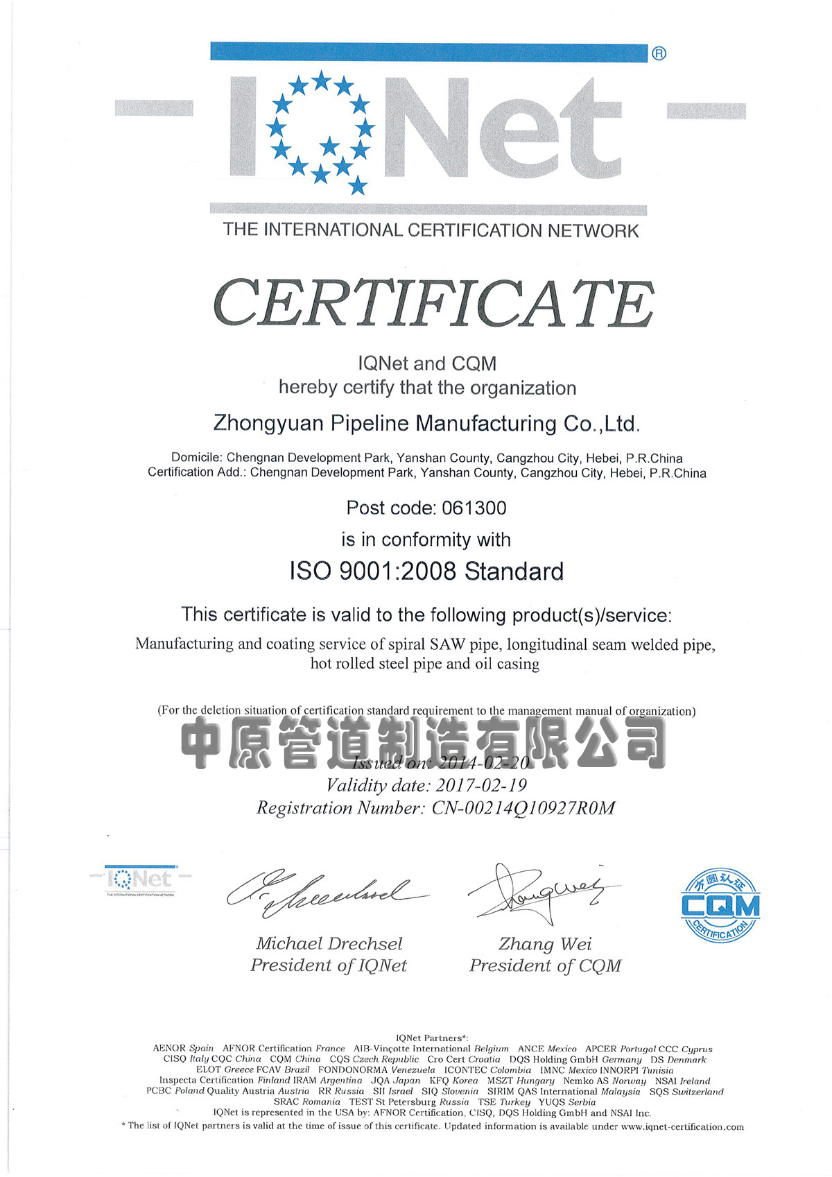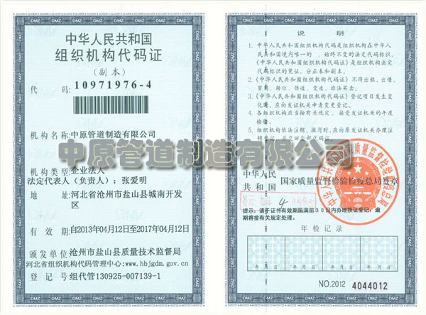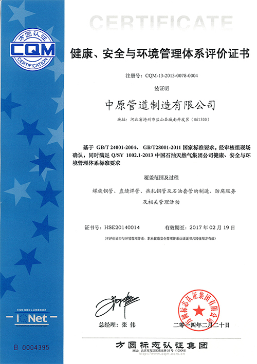 HSE健康安全環(huán)境管理體系評價證書(2014)